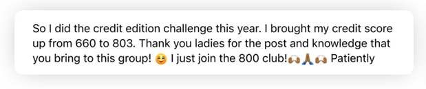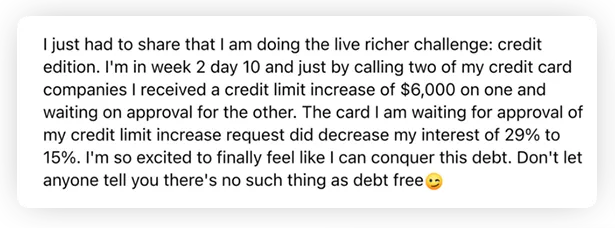 Of those: 94% reported positive movement in credit card debt paydown! 86% reported a better credit report due to challenge guidance!