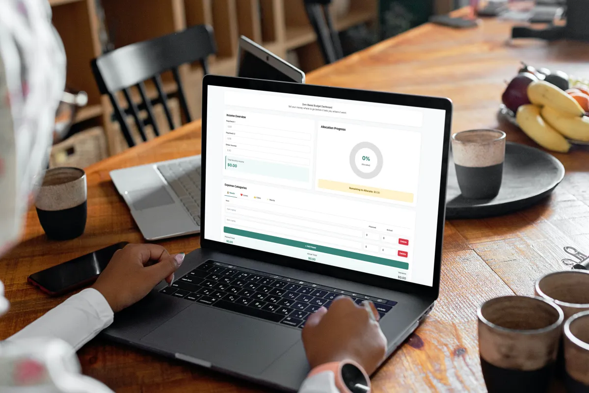 A computer-friendly, auto-calculating dashboard that updates your totals as you enter your income, bills, and spending.